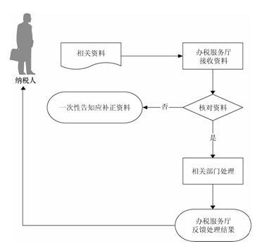 (1)办税服务厅接受资料,核对资料是否齐全、是否符合法定形式、填写内容是否完整,符合的即时接收;不符合的当场一次性告知应补正资料或不予接收原因。