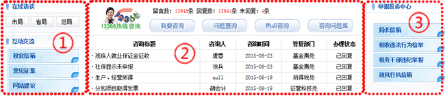 ① 在线访谈--包括在线访谈和互动交流,公布国家总局、省局、市局的最近访谈内容信息,可以查看访谈详细内容和解答问题;您可以参与税官信箱、网站建议信箱和意见征集进行互动交流;